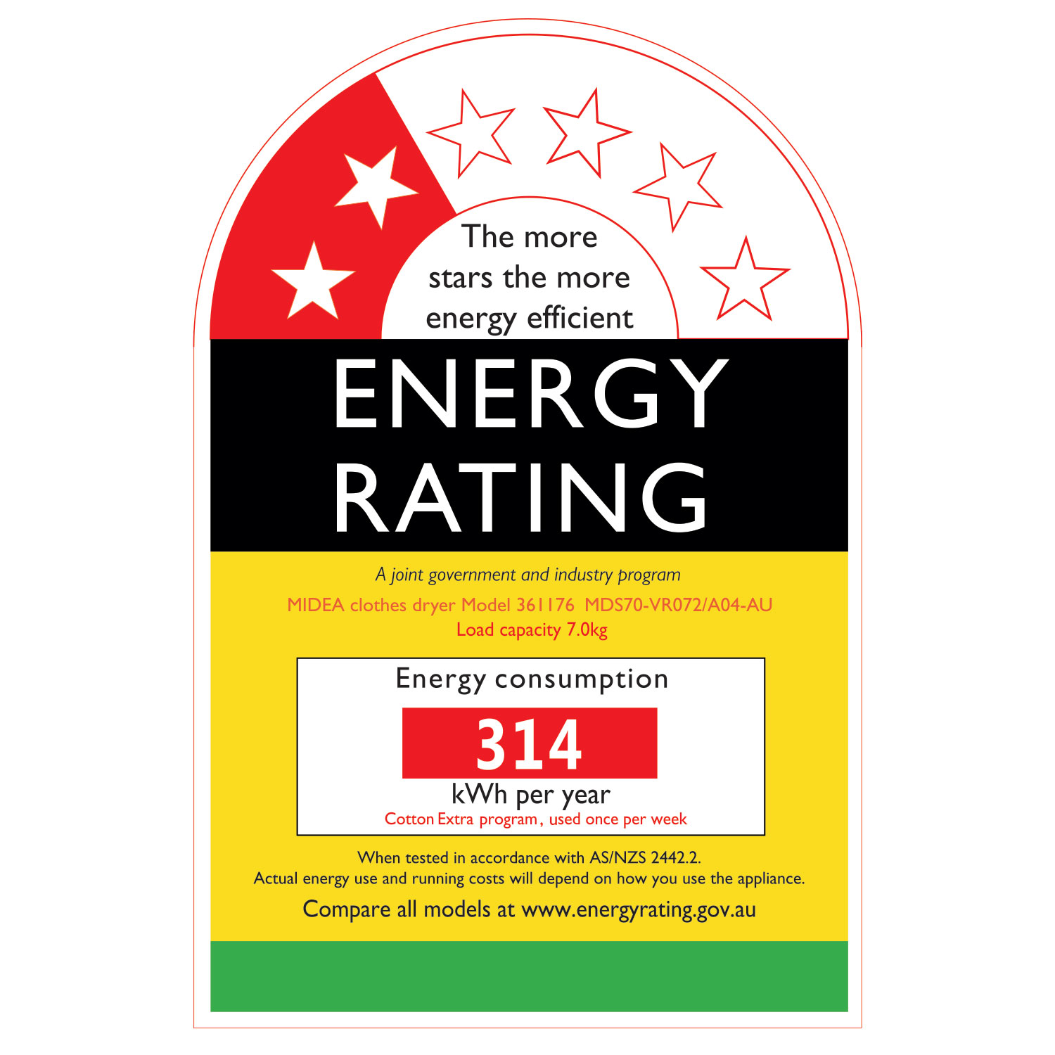 Midea Essential Care 7kg Air Vented Dryer Specifications